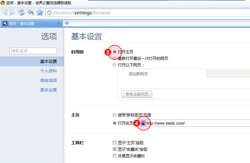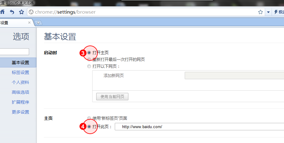 方法1:設(shè)置瀏覽器主頁(yè)為百度