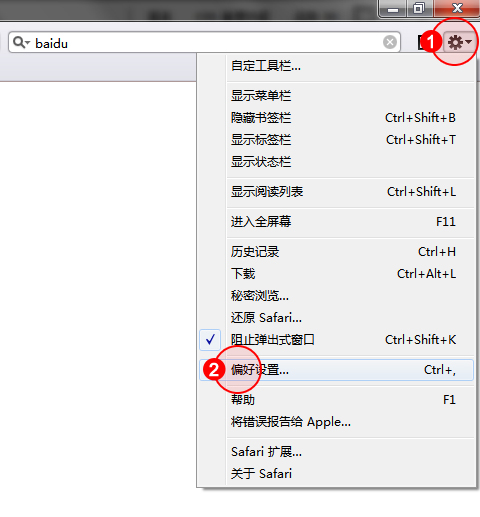 1.點(diǎn)擊瀏覽器左上角工具按鈕,選擇"設(shè)置",首選項(xiàng)。